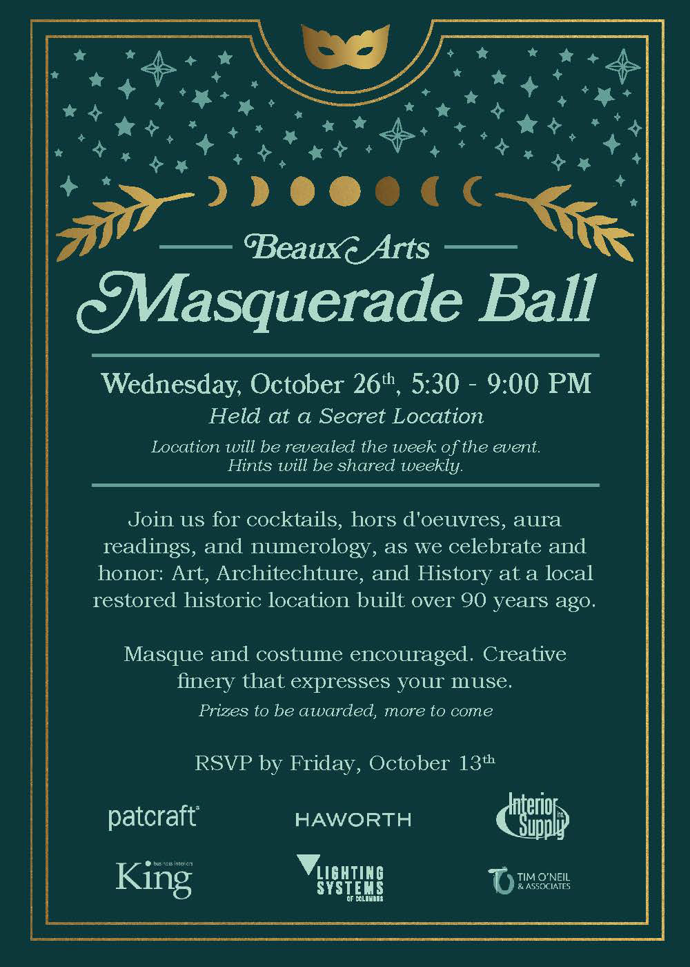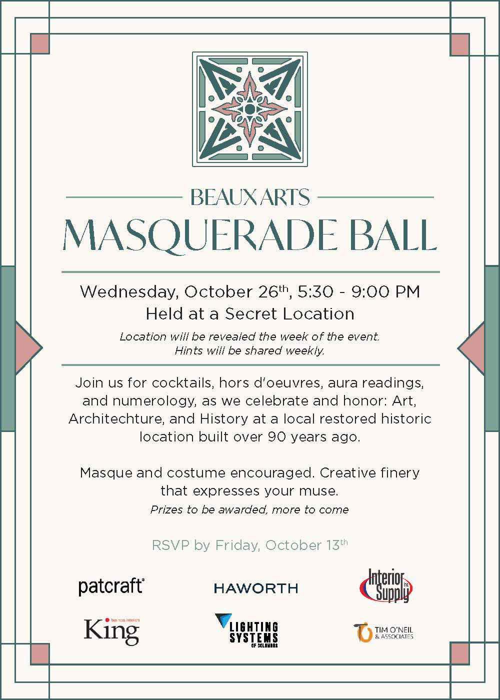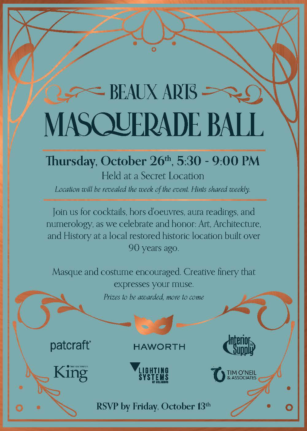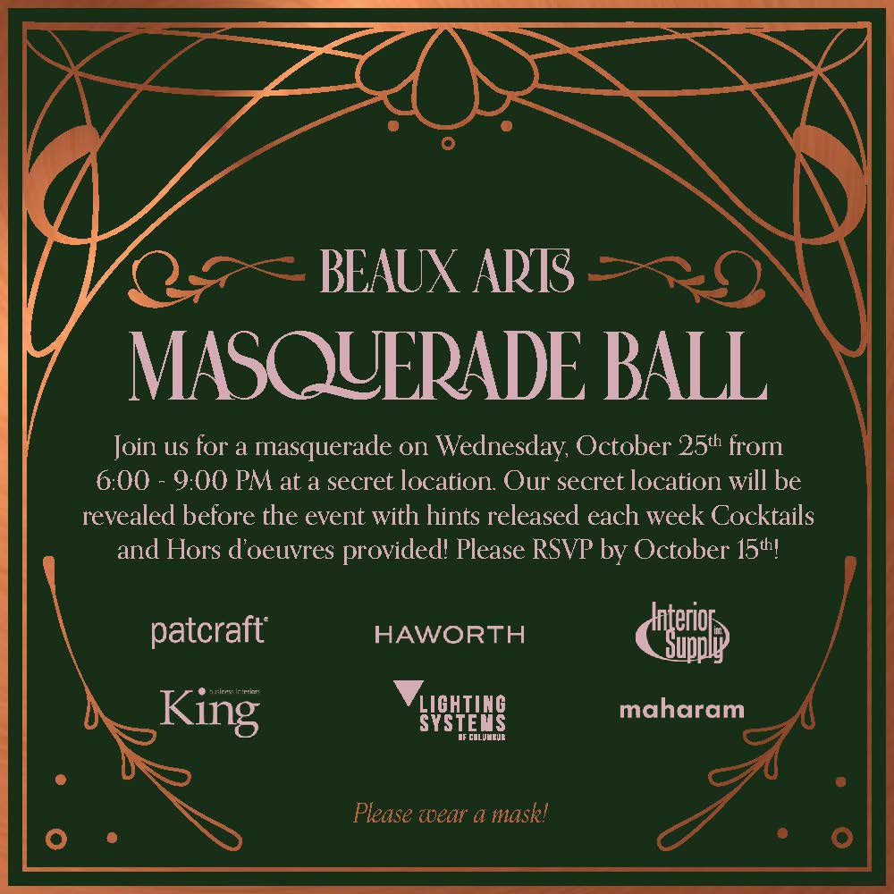 I’ve worked with the hosts of the biannual Masquerade ball for several years now. The masquerade balls are always a celebration of the Columbus Architecture and Design community. They took a break from hosting due to COVID and wanted to come back with a splash. In 2023, the masquerade ball was inspired by the Beaux-Arts avant garde costume ball traditionally hosted by students of the École nationale supérieure des Beaux-Arts. The masquerade was hosted at a local historic landmark built in the 1920s, Green Lawn Abbey.